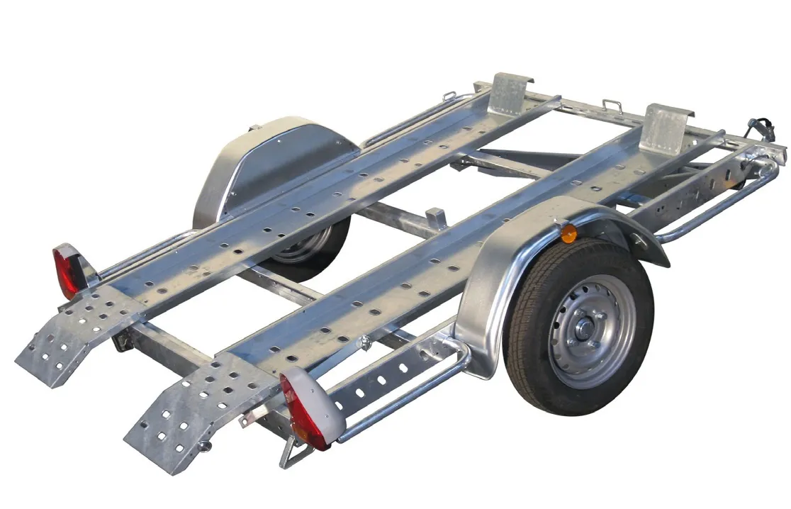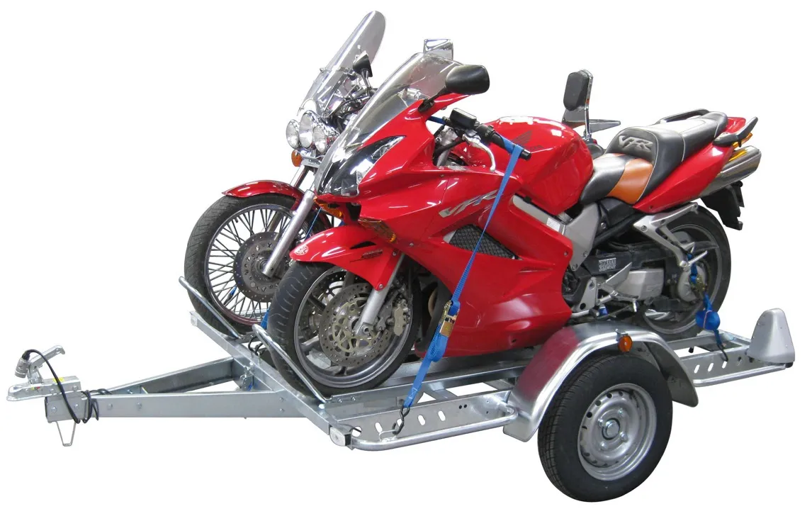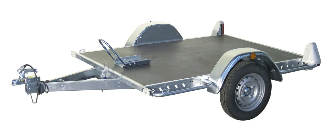 Remorque porte 1 moto adaptable pour 2 motos en option, équipée de rail avec fourche sabot, rampe de montée, jeu de sangles moto, antivols, roue de secours. Modulable avec ses rails et son plancher bois démontables, elle permet également le transport d’un quad, d’un autoporté. Basculante, le plancher bois et les ridelles en tôle de 40 cm la transforme en bagagère pour tout autre transport pour vos loisirs et pour vos travaux.
